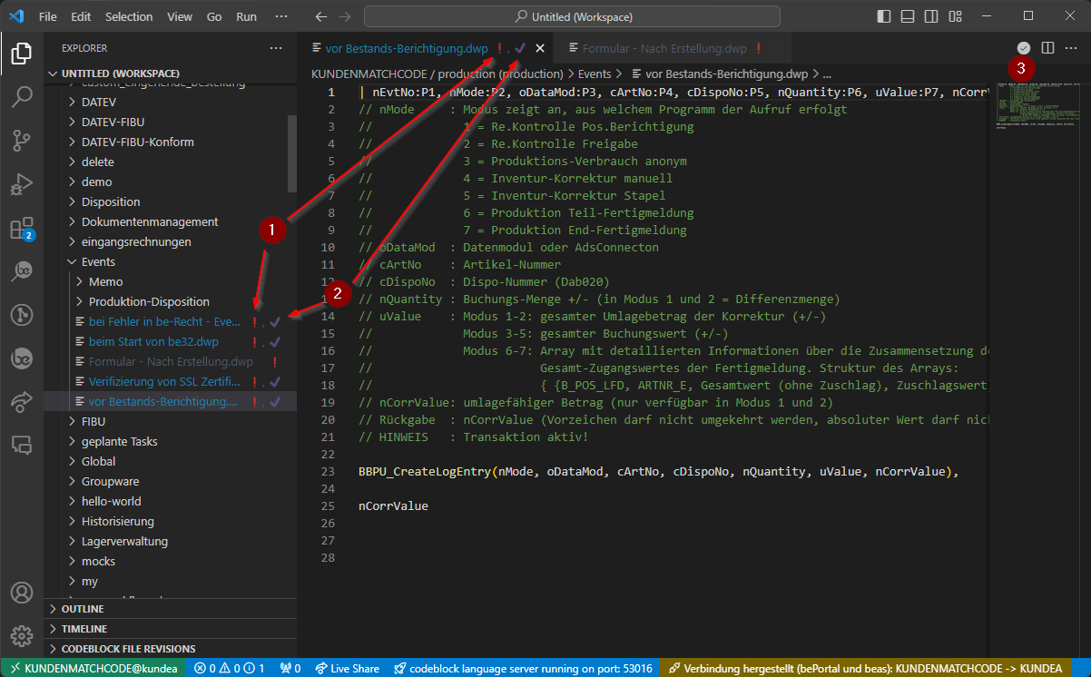 Diese Seite beschreibt die Möglichkeiten der Customizing-Entwicklung mit der VS Code Extension codeblock (business express).