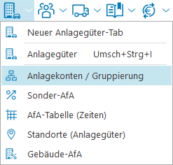Gruppierung | Ein gesetzter Haken zeigt an, dass das Anlagegut gruppiert ist. |
