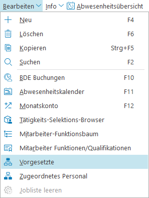 Abwesenheiten | Gibt an, ob der Vorgesetzte vollständige Einsicht und Bearbeitungsrechte für Abwesenheiten hat. |