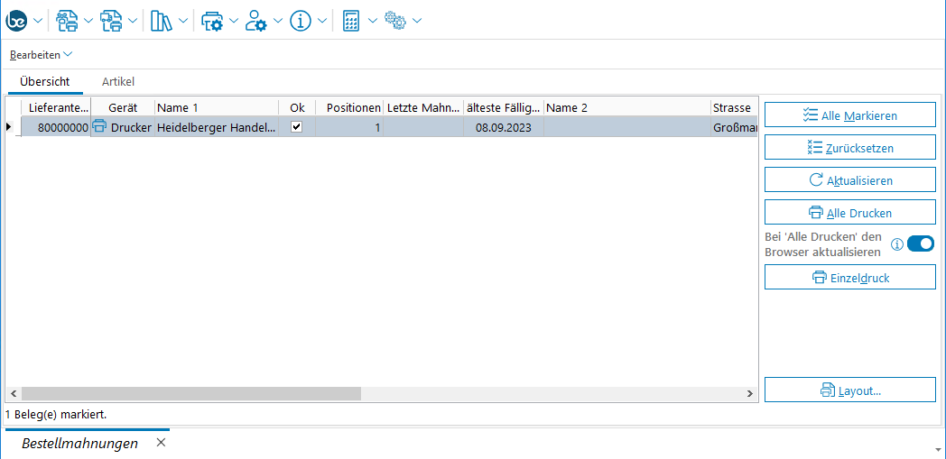 Belegdruck – Bestellmahnungen