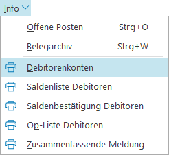 Über Info > Konten drucken können Sie einen Ausdruck Ihrer Konten erstellen.
