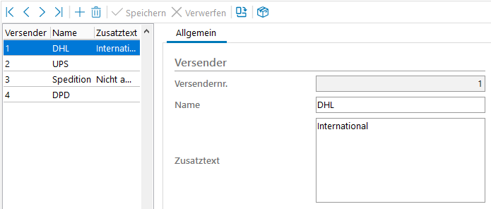 Zusatztext | Hier kann ein zusätzlicher Text, zum Beispiel eine Erläuterung zu dem jeweiligen Versender, eingegeben werden. |