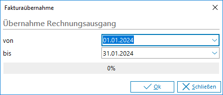 Starten Sie die Verbuchung mit Ok. Der Vorgabezeitraum entspricht der aktuellen Buchungsperiode.