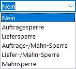 Sperr-KZ | ![]() Sperrkennzeichen für Auftrags- Liefer- und Mahnsperre: