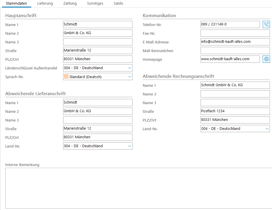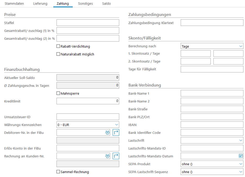 Debitoren-Nr. | 8-stellige, numerische Nummer. Sie dient zugleich als Suchbegriff. |