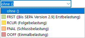 SEPA-Lastschrift-Sequenz | Angaben zur zugehörigen SEPA-Lastschriftsequenz (abhängig von bereits durchgeführten Zahlungsläufen):
