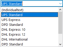 Versandart/Versender-Nr. | Auswahl der Versender und Versandart, die Verwaltung der Versender und dazugehörigen Versandarten erfolgt in der Versandsteuerung / Versenderverwaltung |