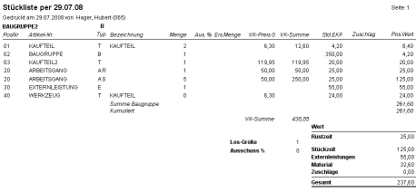 VK-Preis-Nummer | Ausdruck der Stücklisten mit VK-Preisen, relevant bei Ersatzteillisten |