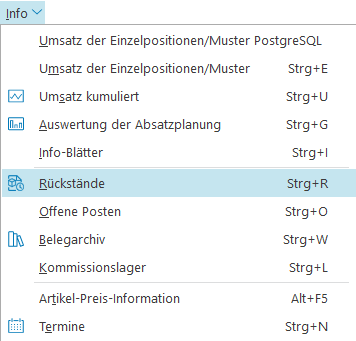 In den Kunden-Aufträgen ist dieses Fenster unter Kunde>Rückstände anzeigen (Strg+R) zu finden.