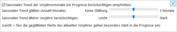 Hier können verschiedene Einstellungen hinsichtlich Glättung und saisonaler Trends getroffen werden: So können saisonale Trends bei dem jeweiligen Artikel stärker oder schwächer berücksichtigt bzw. geglättet werden.