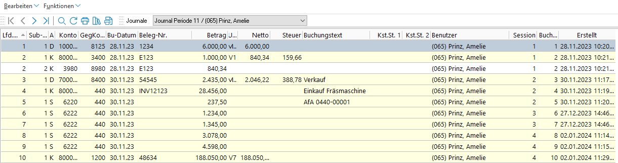 Sie können das Journal auch durch Klick auf den jeweiligen Spaltenkopf auf- und absteigend sortieren.