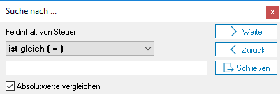 Mit dem Suchen-Symbol können Sie nach einer Buchung innerhalb der angezeigten Periode suchen. Die Suche erfolgt dabei in der Spalte der Tabelle, in der Sie ein Feld mit der Maus markiert haben.
