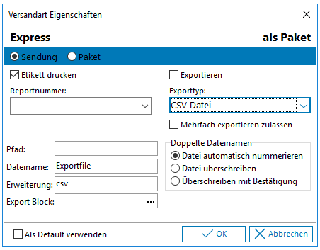 Mehrfach exportieren zulassen | Sie können ebenfalls festlegen, dass die Versanddaten mehrfach exportiert werden dürfen, was für eine Weiterverarbeitung jedoch nur in Ausnahmefällen sinnvoll sein dürfte. |