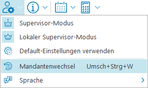Mit dieser Funktion können Sie über Umgebungsoptionen > Mandantenwechsel zwischen den angelegten Mandanten, z.B. dem aktuellen und dem Vorjahresmandanten, wechseln.