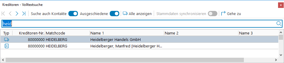 Kreditoren - Volltextsuche (Strg+F)