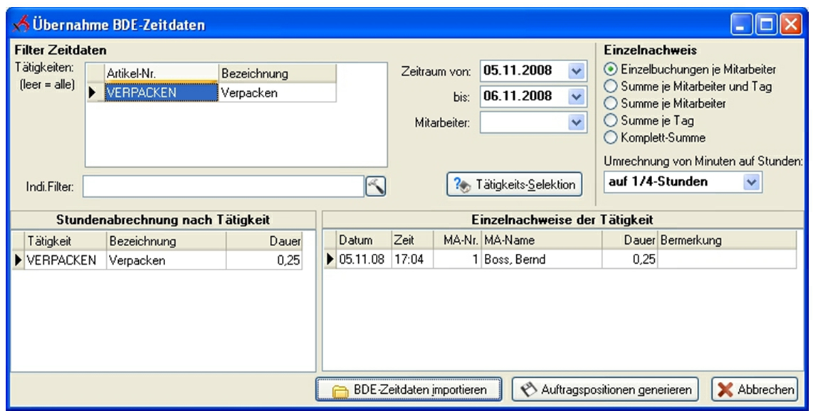 Auftragsbearbeitung / Übernahme BDE – Zeitdaten