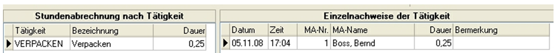 Im unteren Bereich des Fensters werden die Einzelnachweise angezeigt, die als Auftragsposition übernommen werden können.