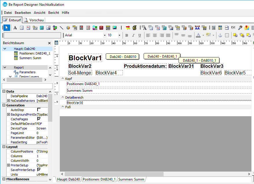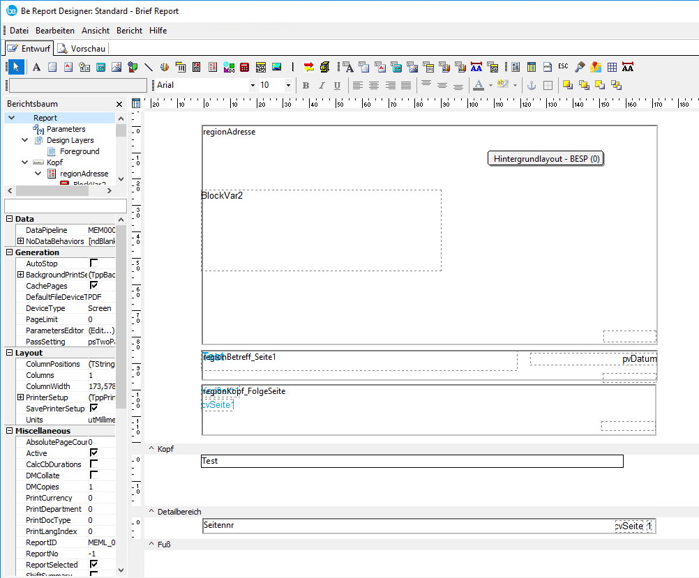 Nachfolgend ein Beispiel für den Einsatz des Reportdesigners bei Brief / Faxformularen: