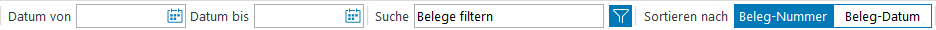 Darüber hinaus ist es möglich, über einen Datumsfilter und eine Volltextsuche die Anzeige der Belege weiter einzuschränken: