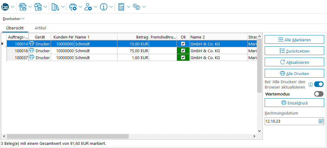 Belegdruck aus dem Modul Printmanager