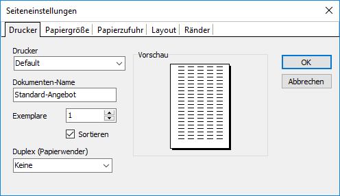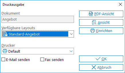 Unter Umständen erfolgt noch eine Abfrage von notwendigen Druckparametern (z.B. bei der Proforma-Rechnung) vor dem eigentlichen Ausdruck.