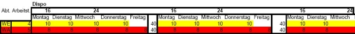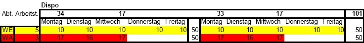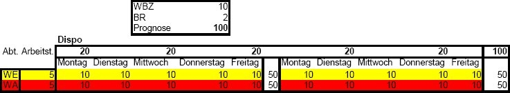 Dispositionsberechnungen mit unterschiedlichen Arbeitstagen WE/WA (Tagesgenaue Planung)