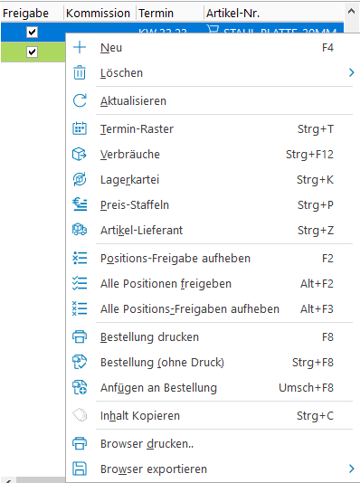 Neu (F4) | Erstellung einer neuen Position zum ausgewählten Lieferanten. |