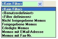Über den vorhandenen Filter kann die Anzeige der Memos abhängig von den getätigten Einstellungen anpassen: