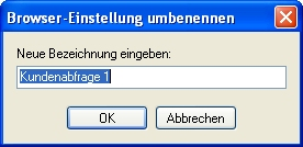 Browser-Einstellung umbenennen | Es öffnet sich ein Fenster, in dem die geraden gewählten Browser-Einstellungen umbenannt werden können: |