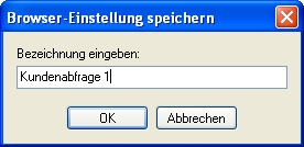 Browser-Einstellung speichern unter | Speichern der Einstellungen unter einem bestimmten Namen, diese Funktion ist auch beim erstmaligen Speichern relevant. |