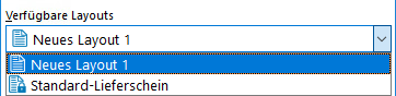 Nun können Sie das Layout auswählen. Bitte führen Sie keine Änderungen an Layouts durch, ohne Sicherheitskopien erstellt zu haben.