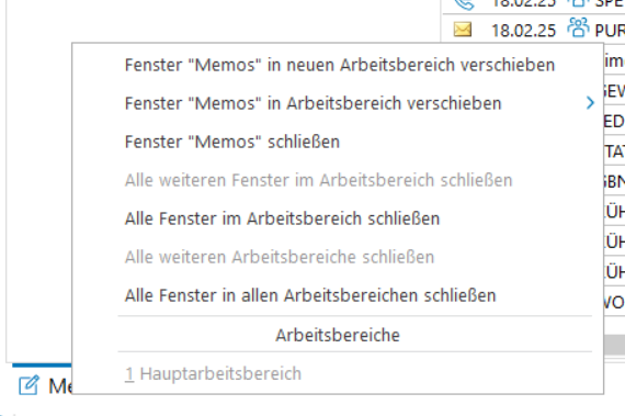 Fenster "Memos" in neuen Arbeitsbereich verschieben | Verschiebt das Fenster „Memos“ in einen neu erstellten Arbeitsbereich. |