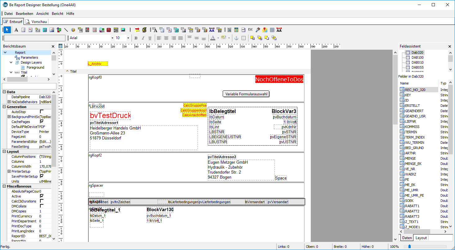 Formularlayout / Reportdesigner