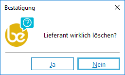 Vor der Löschung erfolgt eine Rückfrage, die mit "Ja" beantwortet werden muss. Das Löschen ist nur möglich, wenn auf den Satz im laufenden Geschäftsjahr noch nicht gebucht wurde und auch keine Überträge aus früheren Geschäftsjahren vorhanden sind. Andernfalls wird die Löschung mit einer Fehlermeldung abgelehnt.