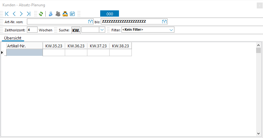 Zeithorizont | Angabe des Zeithorizonts in Wochen, innerhalb dessen die Absatzplanung erstellt werden soll. |
