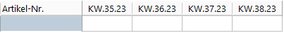 Suche: KW | Suchmöglichkeit nach einer konkreten Kalenderwoche innerhalb des Absatzplanungszeitraums |