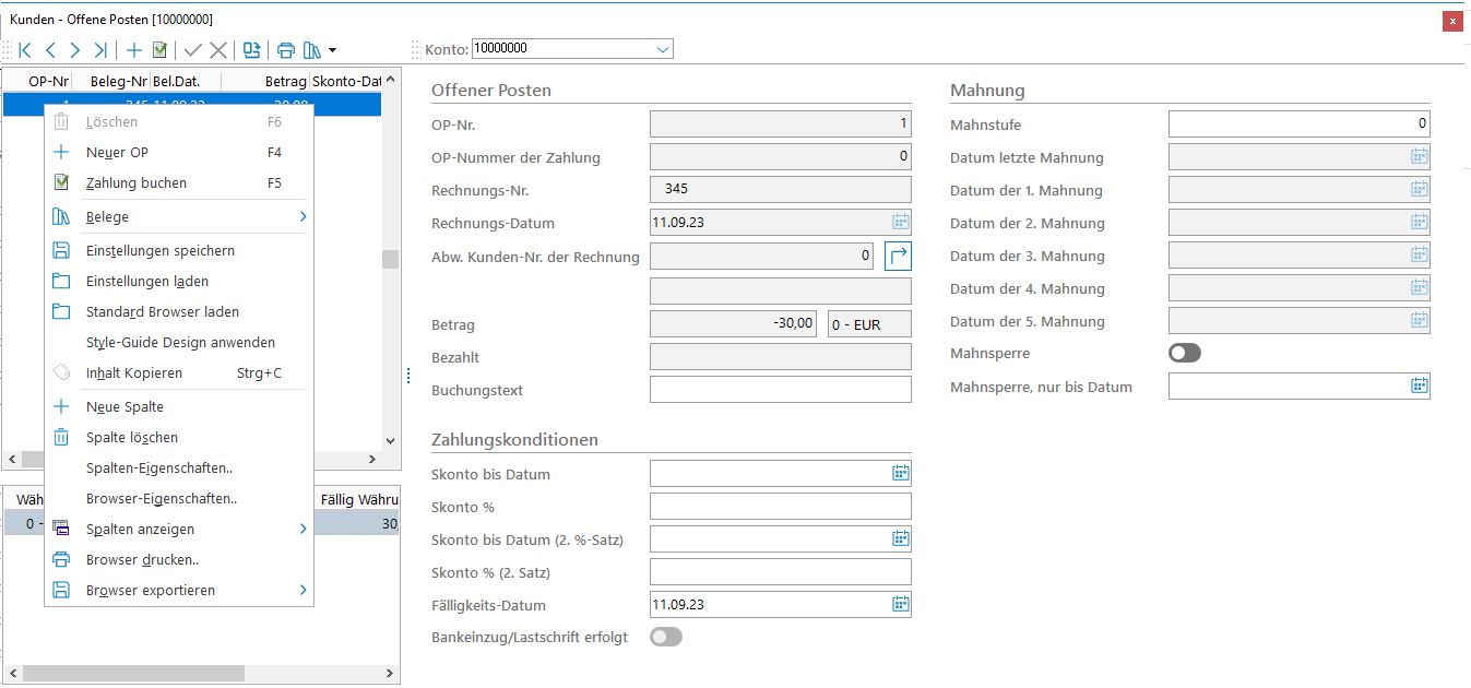 Kunden / Offene Posten (Strg+O)