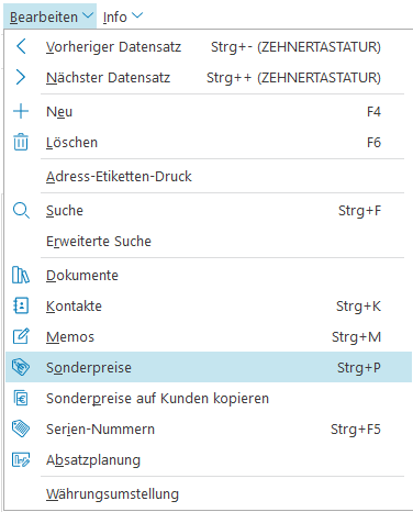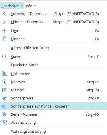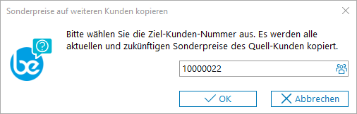 Mit dieser Funktion können Sie einmal erfasste Sonderpreise auch für einen anderen Kunden verwenden.