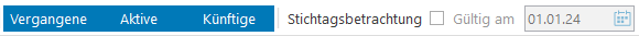 Die Sonderpreis-Anzeige im Browser kann in Bezug auf die Gültigkeit mit einem Filter eingeschränkt werden, so dass vergangene, künftige oder zu einem bestimmten Datum gültige Datensätze angezeigt bzw. ausgeblendet werden.