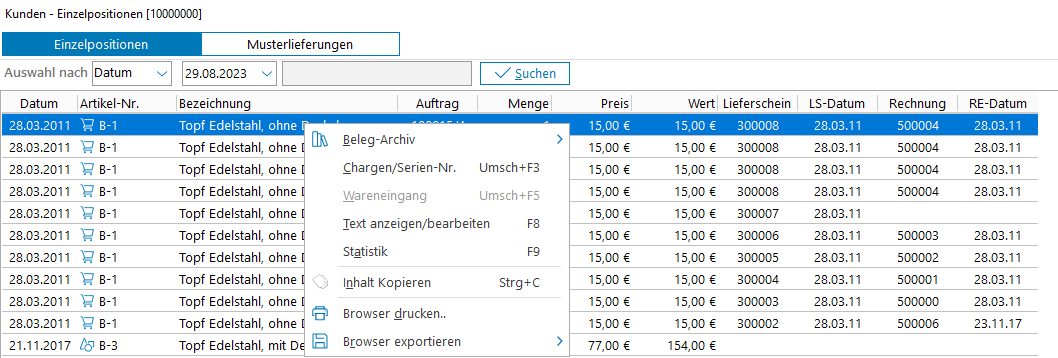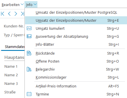 Kunden: Umsatz Einzelpositionen/Musterlieferungen