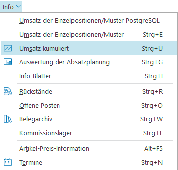 Mit dieser Funktion können Sie eine schnelle statistische Auswertung der aktuellen Umsatzdaten durchführen.