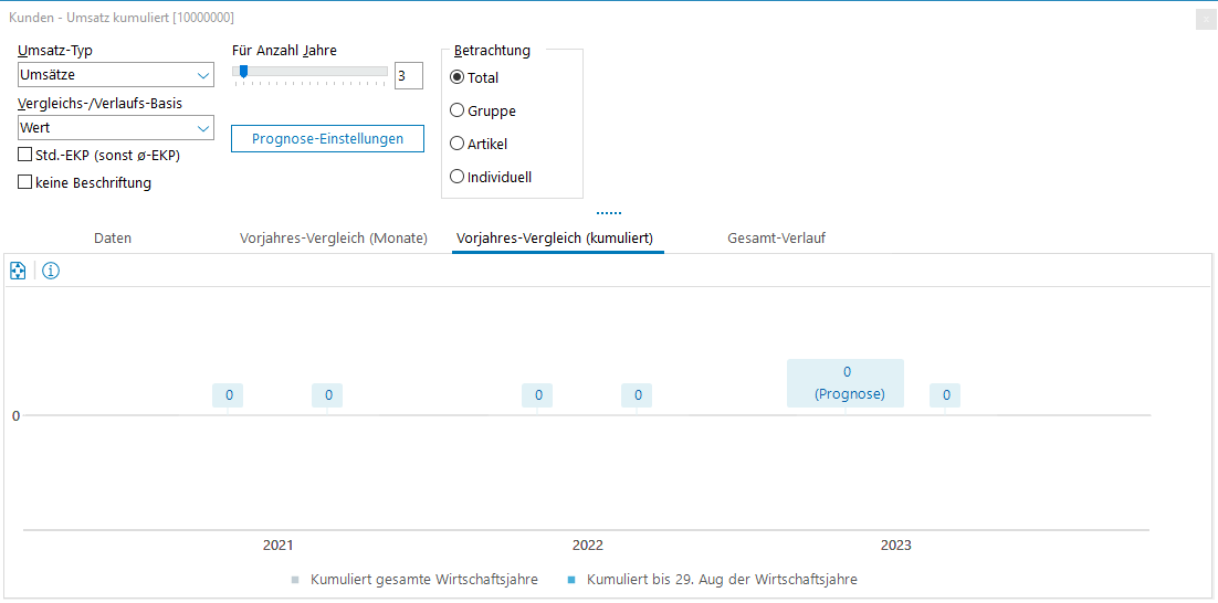 Hier können Sie Kundenumsätze bequem grafisch aufbereitet oder in Zahlen ausgedrückt darstellen lassen.