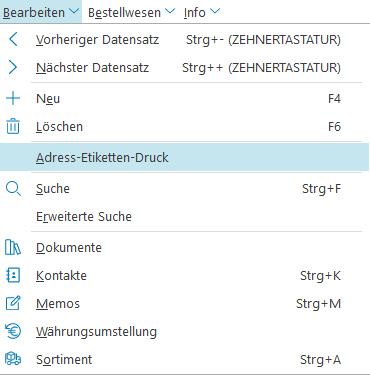 Lieferantenverwaltung: Adress-Etiketten drucken