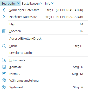 Neben den in den vorherigen Kapiteln beschriebenen Funktionen gibt es noch weitere grundlegende Funktionen in der Lieferantenverwaltung, welche Ähnlichkeiten zur Kunden- und Vertreterverwaltung aufweisen.