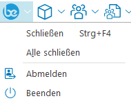 Dieses Menü bietet Funktionen zum Schließen von Fenstern, Abmelden und Beenden der Anwendung.