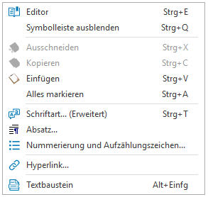 Wenn Felder im Rich-Text-Format existieren, die bearbeitet werden sollen, gibt es über das Kontextmenü die Möglichkeit, weitere Funktionen aufzurufen: