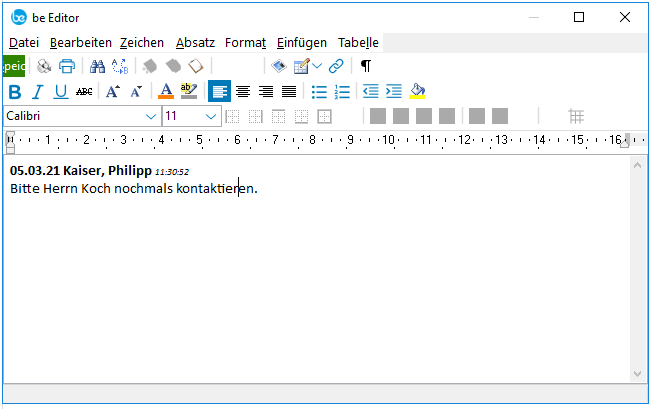 Der business express-Editor besitzt dabei alle Funktionalitäten eines Standard-Text-Editors: