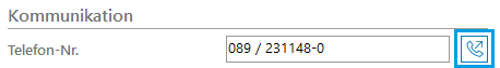 Die integrierte Telefonfunktion kann durch einen Verknüpfungsbutton auf der Kunden-/ Lieferanten-/ Vertreter- oder Kontakt-Maske aufgerufen werden. In Verbindung mit entsprechender Zusatzhardware kann hiermit eine automatische Telefonanwahl des entsprechenden Kontaktes vorgenommen werden.
