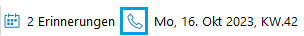 Durch Klick auf das Telefonsymbol öffnet sich die business express Benachrichtigungsfenster, in welcher die Anrufe und Erinnerungen gespeichert sind: