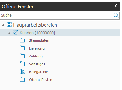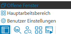 Der Fenster-Navigator zeigt, welche Fenster gerade bearbeitet werden (in der Abbildung der Icon Stift) und bei welchen ein Wechsel zu einem anderen Datensatz nicht möglich ist (siehe in Abbildung Icon Schloss). Dadurch wird gekennzeichnet, welche Vorgänge gespeichert oder verworfen werden müssen, um business express beenden zu können.